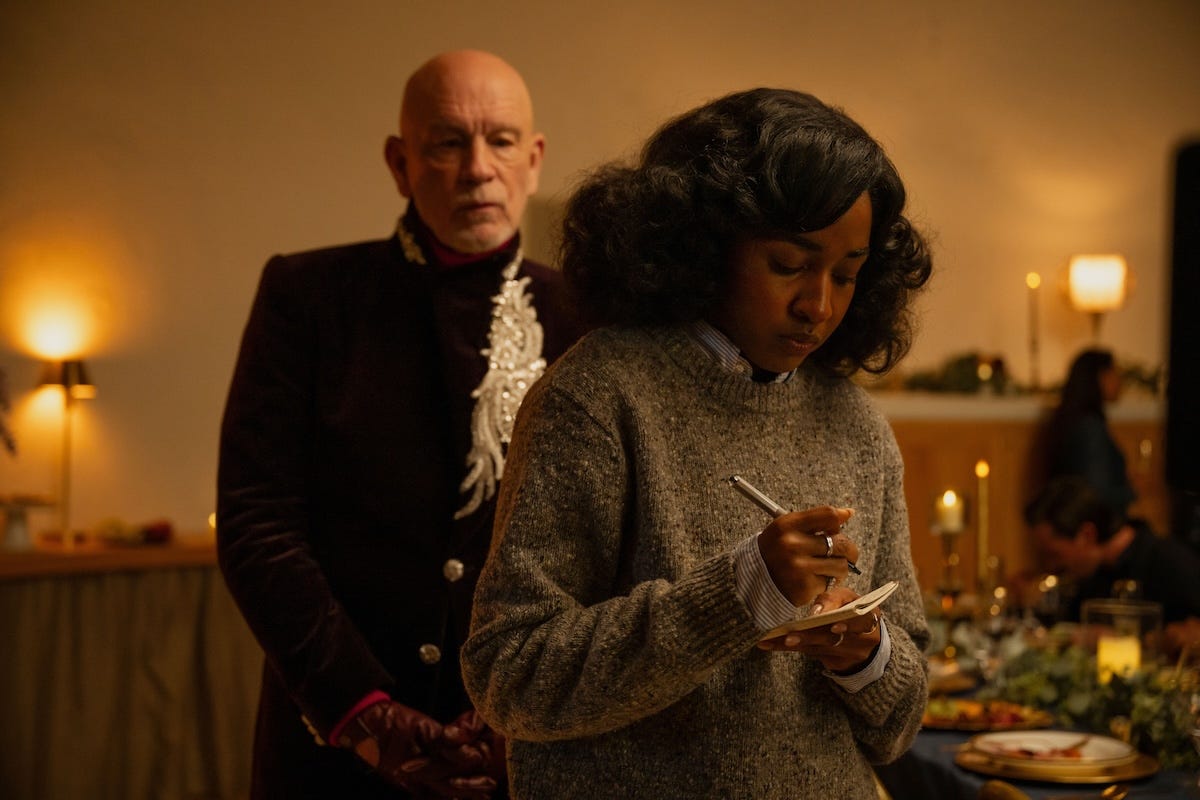 So it is with some surprise—to her, to her coworkers—that Ariel is asked by the mysterious, reclusive pop star Moretti (John Malkovich) to accompany Murray to Moretti’s compound to listen to his first studio album in 27 years. Ariel and Murray will be joined by vapid influencer Emily Katz (Stephanie Suganami), grating television personality Clara Armstrong (Juliette Lewis), rock critic and podcaster Bill Lotto (Mark Sivertsen), and paparazzo Bianca Tyson (Melissa Chambers) on this visit, where they are supposed to luxuriate in Moretti’s presence and learn the tenets of Levelism.