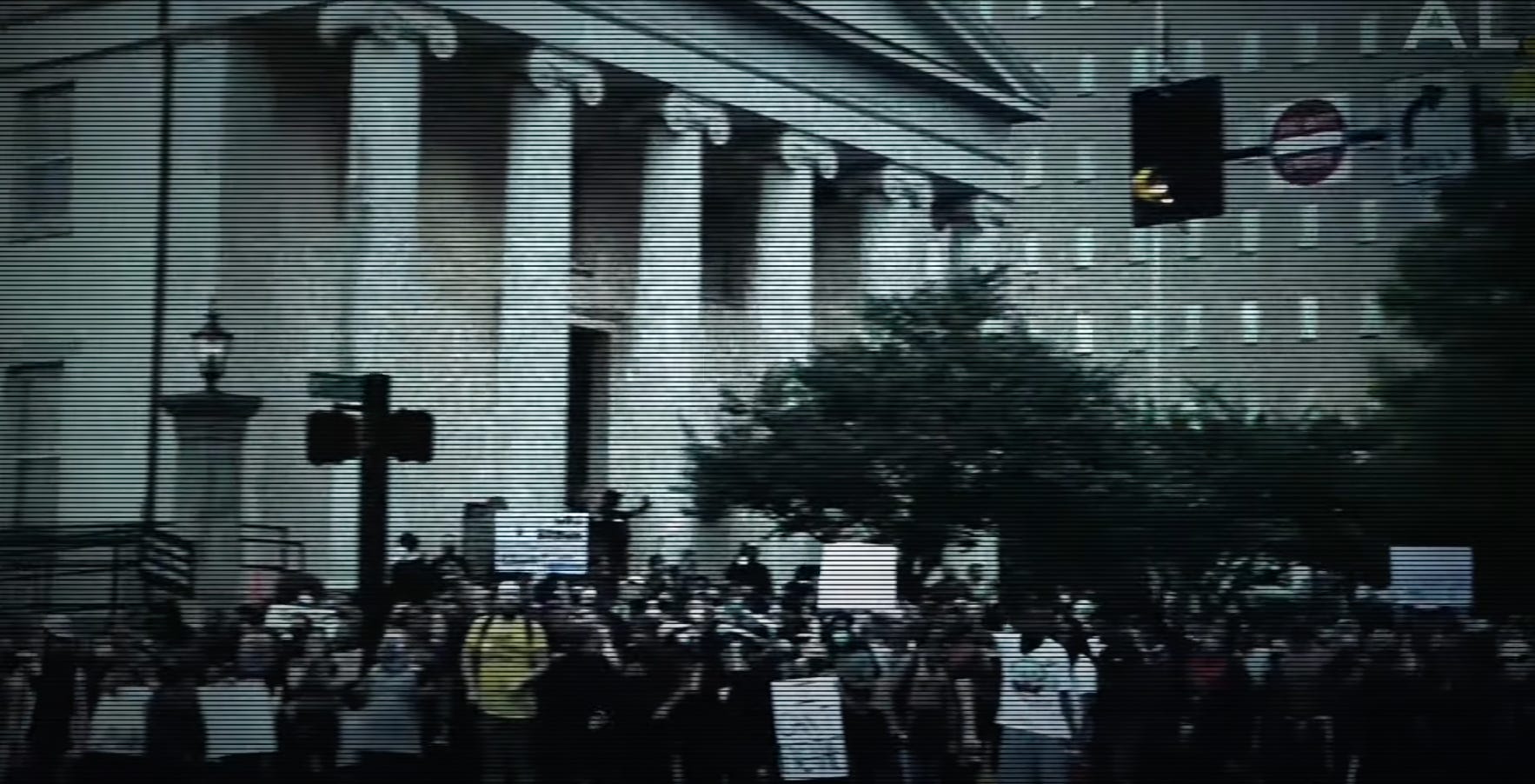 As Taylor says “Kamala’s America,” she shows video of people in Huntsville peacefully protesting the murder of George Floyd. Why is this sinister? Also, didn’t this scene take place during the Trump administration? Isn’t that literally “Trump’s America”?