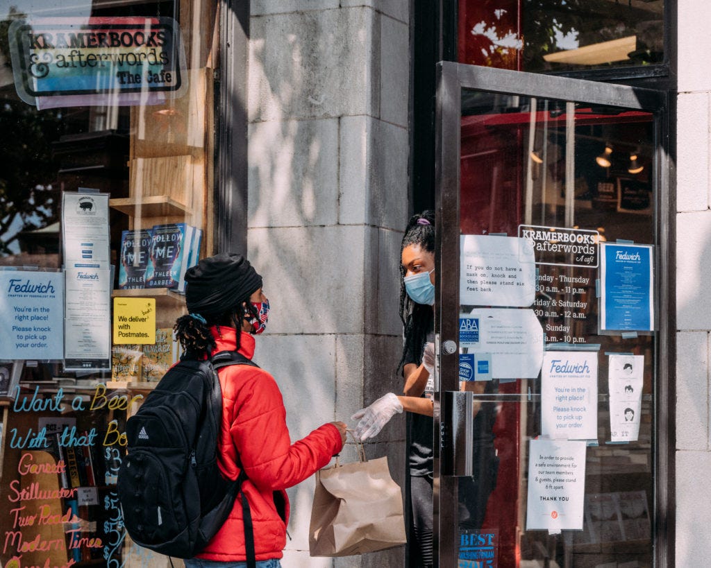 An employee hands off an order for delivery. The store also now ships orders through Bookshop.org. Photo by Carl Maynard @carlnard for The Bulwark Like so many, I have my own history with Kramerbooks. I grew up in northern Virginia and I lived in the Southeast quadrant of the District after college. I understand the outpouring of feeling and support for the store. But not the histrionic sentimentalism. This is not an effort at “hip cynical transcendence of sentiment” as David Foster Wallace put it, but a reckoning with my own habits of consumption and behavior. “Sentimentality surreptitiously shrinks our world and concerns to the circumference of ourselves.” Kupfer concluded in his essay, “The self-absorption which feeds off our direct emotional focus makes sentimentality a deceptive, dangerous vice, not something to be brushed off as little more than a genteel foible.” Still, I understand the vice. It’s hard to avoid a glut of emotion when you’re thinking about a place of personal significance. By nature, I am not a sentimental person. But I was sentimentally attached to Kramers for a very long time. Sentimentality is simple and self-reflexive. Actual mourning is complicated. For me, Kramers was a site of quiet, private humiliations. It was also a site of refuge. And disappointment. As a place, Kramers has the same emotional weight in my life as a high school bathroom where I would go to hide rather than socialize in the cafeteria. The most fitting example of Kramers's definitional role in my life is the night of the White House Correspondents’ Dinner in 2017. I was in my early 20s and getting started in journalism after a year of freelance meandering and humanitarian travel. I had a job at a doomed weekly magazine and I had just gotten out of a toxic relationship (a perennial hobby of mine). On that night a friend asked me to meet at one of the rooftop afterparties for Washington’s one night of rented glamour, “Nerd Prom.” But, I was unable to get into the party early in the evening—my friend was held up at the dinner. Growing more and more anxious waiting and feeling ridiculous with my misplaced expectations, in an evening dress and heels, I walked a mile and a half to Kramerbooks. Blistered and bleeding through my shoes when I arrived at the bookstore, I crouched down against the poetry shelf in a puddle of the dress’s sparkling translucent black fabric. I picked up Maggie Nelson’s Bluets and read and read until at last my friend texted to tell me to come back and rejoin the world. I picked up several other books and checked out. I then carried that bag of books around the party like a weighted blanket against my nearly insurmountable anxiety. Jostling through a crowd of new friends and old enemies I wondered what exactly I was hoping to gain from the experience. Why hadn’t I just stayed at the bookstore? In the catalog of liminal public spaces—gas stations and parking lots, libraries and parks, graveyards and churches, stadiums and movie theaters—restaurants and bookstores stand apart and inspire a unique emotional valence for every independent visitor. As the years passed, this is what Kramerbooks became to me: Neutral ground on the threshold of social participation. Whether it was an event or a relationship, I was convinced Kramers was the best place to begin. The best place to linger and kill time, to find and be found. For every occasion seeped in the pain and anticipation of waiting for a party—waiting to be granted admission to the world—I could give you an equal story of feeling at peace among the stacks, or thrilled by discovery. The single best memory I have of Kramers was the 50th anniversary of AWP, the Association of Writers & Writing Programs conference, when Graywolf Press, a non-profit publisher, hosted a party in the bookstore. Which, for me, represented an unsettling reversal of social kismet. Sure the store had an events space and hosted plenty of intimate gatherings and kitschy activities like paint and sip nights, but nothing on this scale, nothing with so many people I held in such high esteem. I wandered through, enthralled by seeing my literary heroes laugh and toast cheers. The store was packed and you could barely move. I was beside myself with joy, briefly happy just to be there in the midst of giants. This is the one memory that ties a knot of nostalgia in my throat, making it hard to swallow the loss of the store as I remember it then in those moments: full of writers, rapturous. https://twitter.com/kramerbooks/status/811367090775085060?s=20 There were other random encounters. I once was lost in concentration looking for something obscure when I realized I was surrounded by plainclothes bodyguards. Grasping for situational awareness I turned around to see Sasha Obama. She was taller than I’d expected, glowing with youth and happiness as she went through the shelves with a friend in cut off summer jean shorts. I remember her smiling. On another occasion I met a young member of the Explorers Club by the fountain in the circle as I was walking towards the bookstore where I had planned to meet a friend for dinner. At the light, he declared this was love at first sight, how surely I was his future wife. He was among friends as well and laughing we all made our way to the cafe where, as a group, we had drinks and told each other stories. He and I walked around the city after, but I lost my nerve and got weird—paranoid for some indiscernible reason beyond the obvious fears of being with a stranger in the night, I was very young, very naive. We parted ways, never to meet again. Then, as the memoirs and hot dish expositions of palace intrigue and the inner workings of Trump’s White House began to trickle out, for work and, sometimes play, I attended almost all of the midnight releases Kramerbooks hosted. Perhaps it was these events that began to turn away my tenderness for the establishment, the true start of a slow so