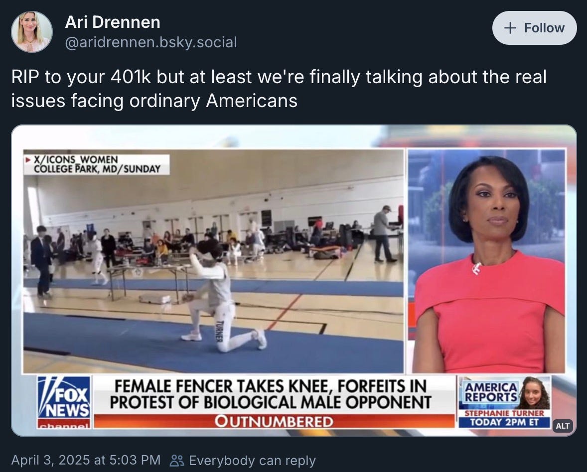 At times like these, you take your laughs where you can get them. And I’ll admit it was pretty funny yesterday watching Fox News gradually decide, over the course of a day-long market crash, that Trump’s “Liberation Day” wasn’t worth bothering people about.