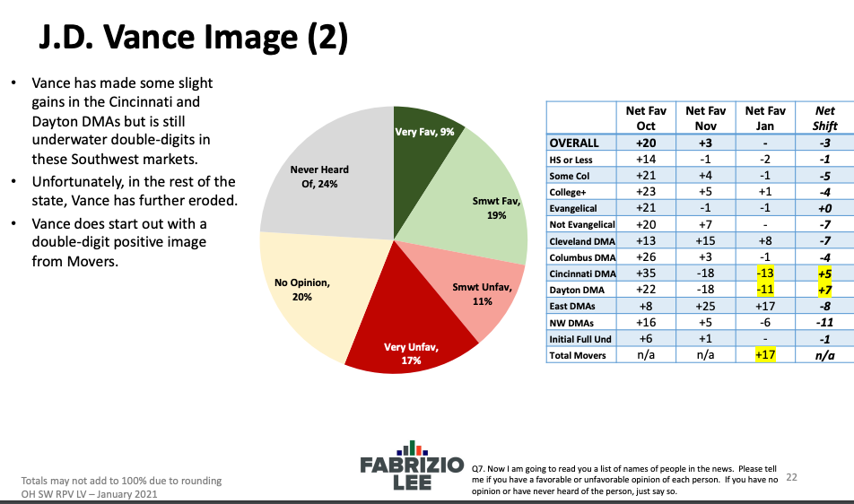 Inside the J.D. Vance implosion… A nice 98 page deck. My favorite one? His people in the southwest part of Ohio? Not fans!