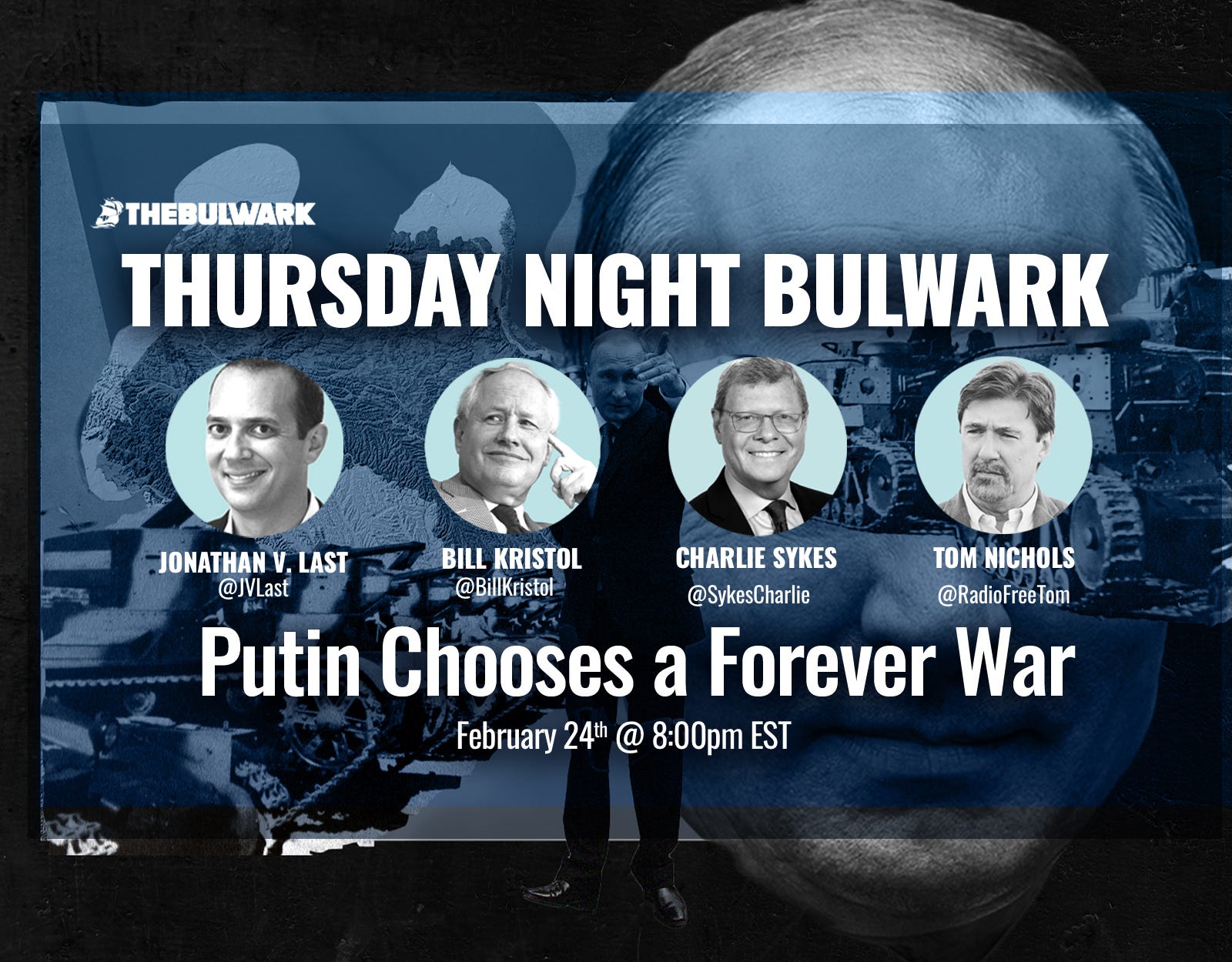 Join Jonathan, Bill, Charlie, and our special guest, Tom Nichols, at 8:00 p.m. ET on Thursday (Feb. 24). The gang will break down the latest news from Ukraine and other events of the day.