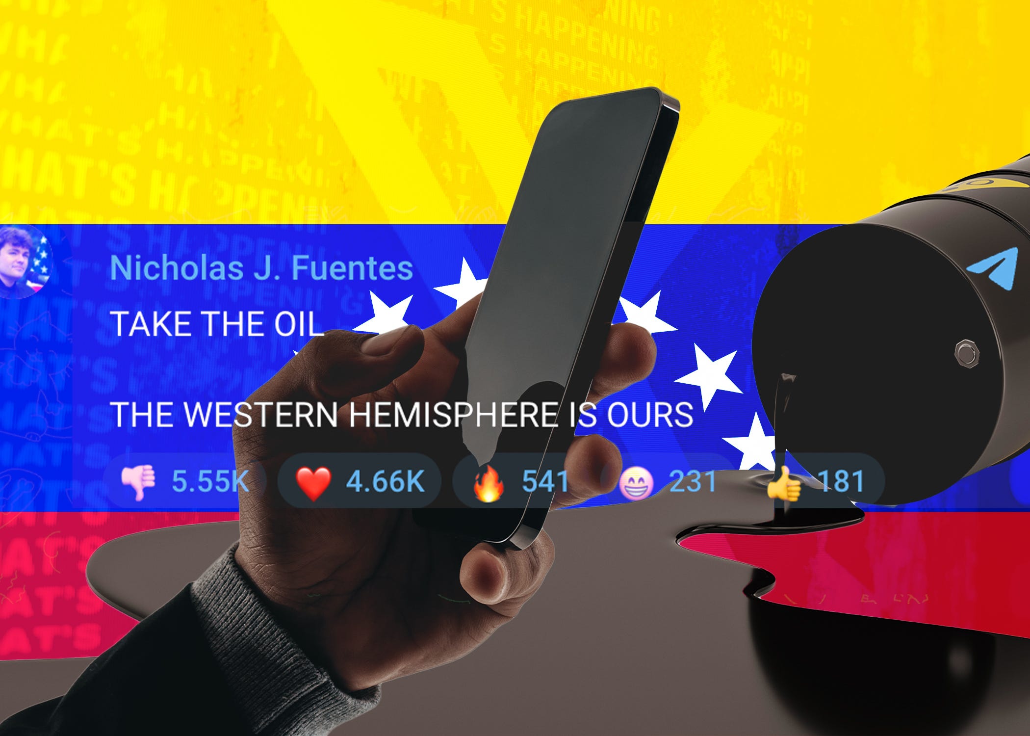 “TAKE THE OIL,” Fuentes posted on social-media app Telegram on Saturday. “THE WESTERN HEMISPHERE IS OURS.”