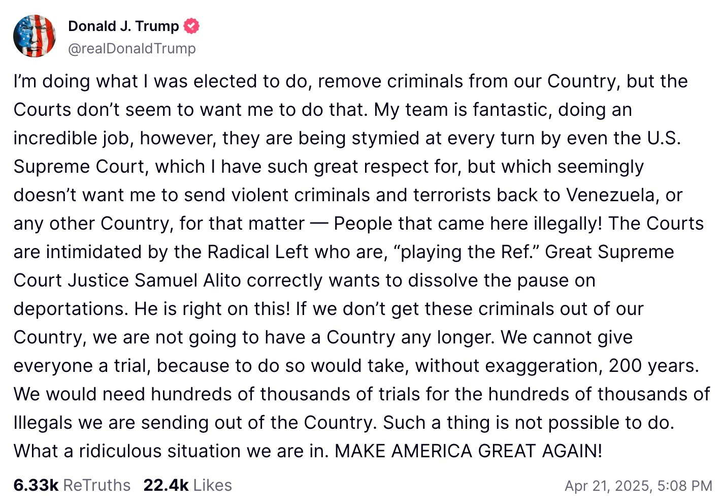 This is bad for the markets—nobody wants traders to wake up every morning in a cold sweat and spend their days fearfully refreshing Truth Social. But it’s bad for Trump, too. His security blanket is gone. No more can he thrill his base and sooth his own rage by popping off online, while the Serious Real World smiles past him indulgently. The Serious Real World is suddenly realizing that the guy making the posts is the guy who’s gobbling up increasingly centralized power—and wielding it however he sees fit.