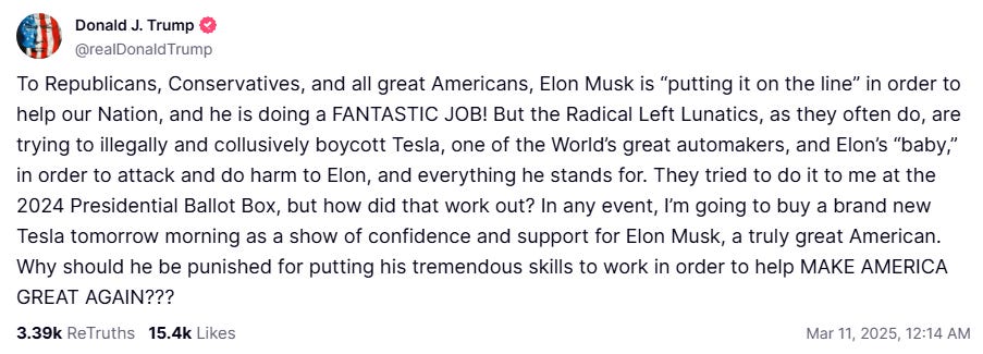 Sure, we may be in for a recession (Trump’s words!), and things already may be looking bumpy for your finances. But show some support for the richest man in the world and buy an electric car.