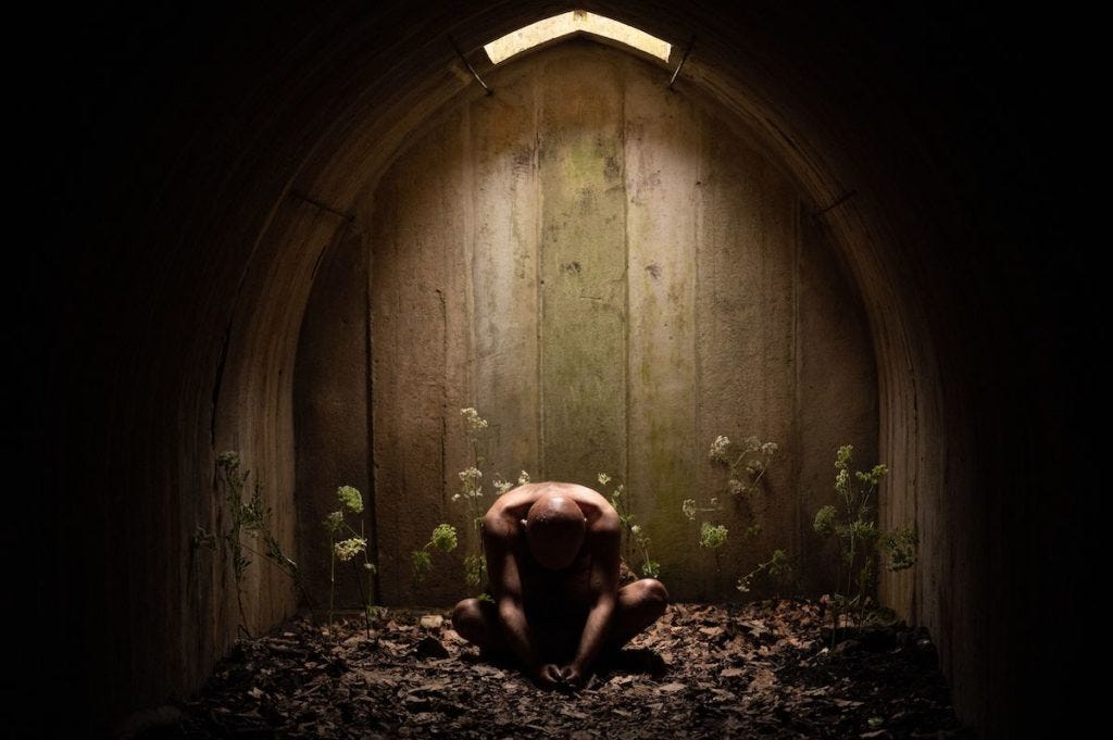I suppose the key figure is Naked Rory Kinnear, an incarnation of the Green Man from European myth. As the film progresses, Naked Rory Kinnear sprouts leaves, branches and twigs jutting out from his face. Traditionally a symbol of renewal and rebirth, this masculine form of pagan energy is, quite literally, a form of renewal and rebirth in Men. A self-propagating, almost recursive, explosion and expulsion of male weakness and frailty and vanity and cruelty, this delivery isn’t cleansing or hopeful, as the new leaves each spring are. It is, instead, just kind of . . . pathetic.