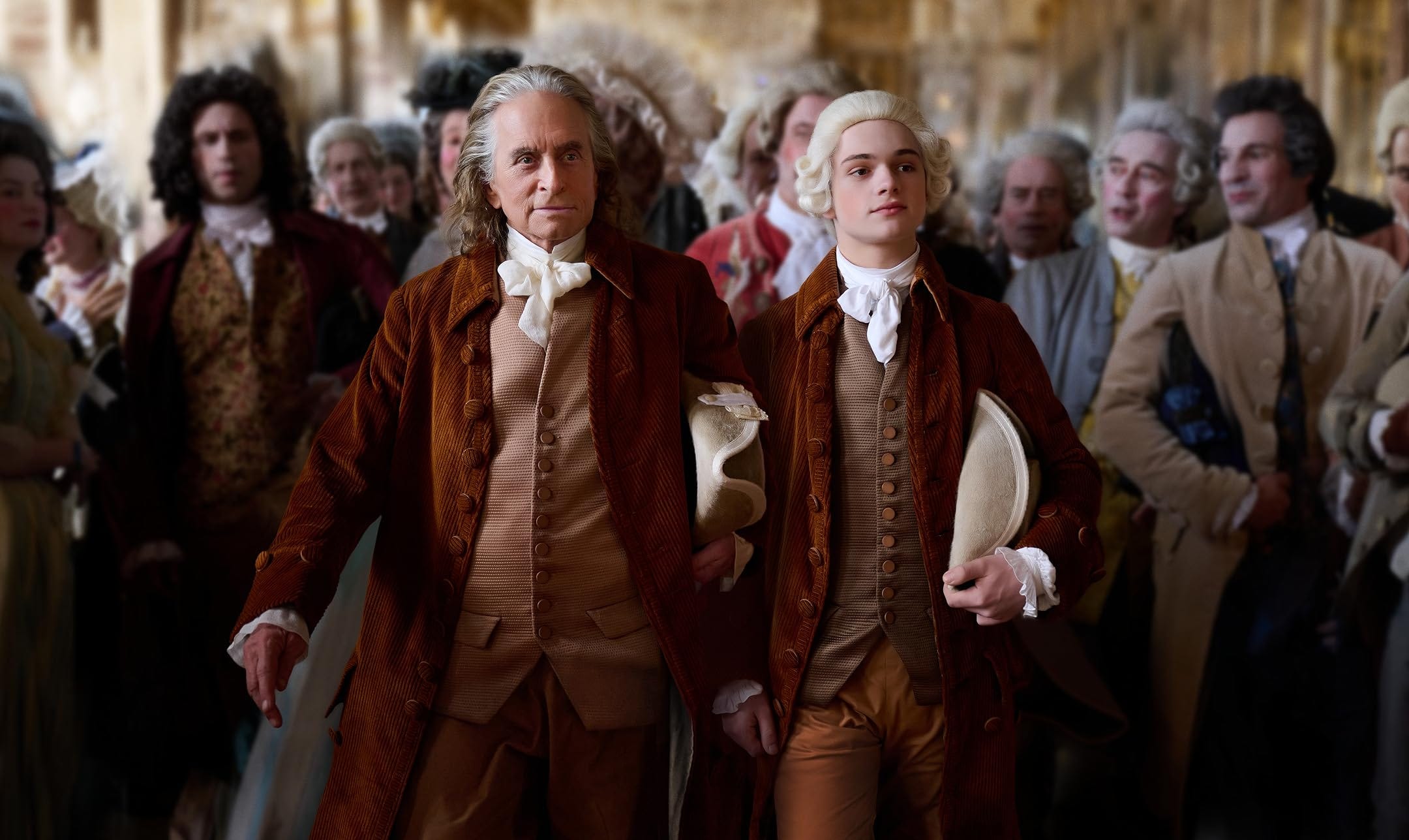 BITS OF FRANKLINIAN LEVITY are sprinkled throughout Franklin, the new Apple miniseries directed by Tim Van Patten (Masters of the Air and The Sopranos). The series primarily focuses on the drama and intrigue of America’s most famous diplomat. While the show’s overarching plot is Franklin’s eight-year mission to secure French support for the American Revolution, it would be almost impossible to portray Benjamin Franklin without some witticisms. Michael Douglas, the only American cast member, doesn’t look much like Franklin—he chose to forgo prosthetics—but he brings Franklin’s personality and humor to life: Within the first fifteen minutes, Franklin philosophizes, “It’s remarkable how one’s outlook can be improved by the passing of wind.” Who’d expect anything less from the author of the essay “Fart Proudly”?