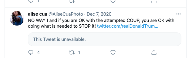 And here’s a mother of an 18 year old who also stormed the Capitol. Apparently she has better lawyers, because looking at what appears to be her Twitter feed, I don’t think she’s truly repentant.