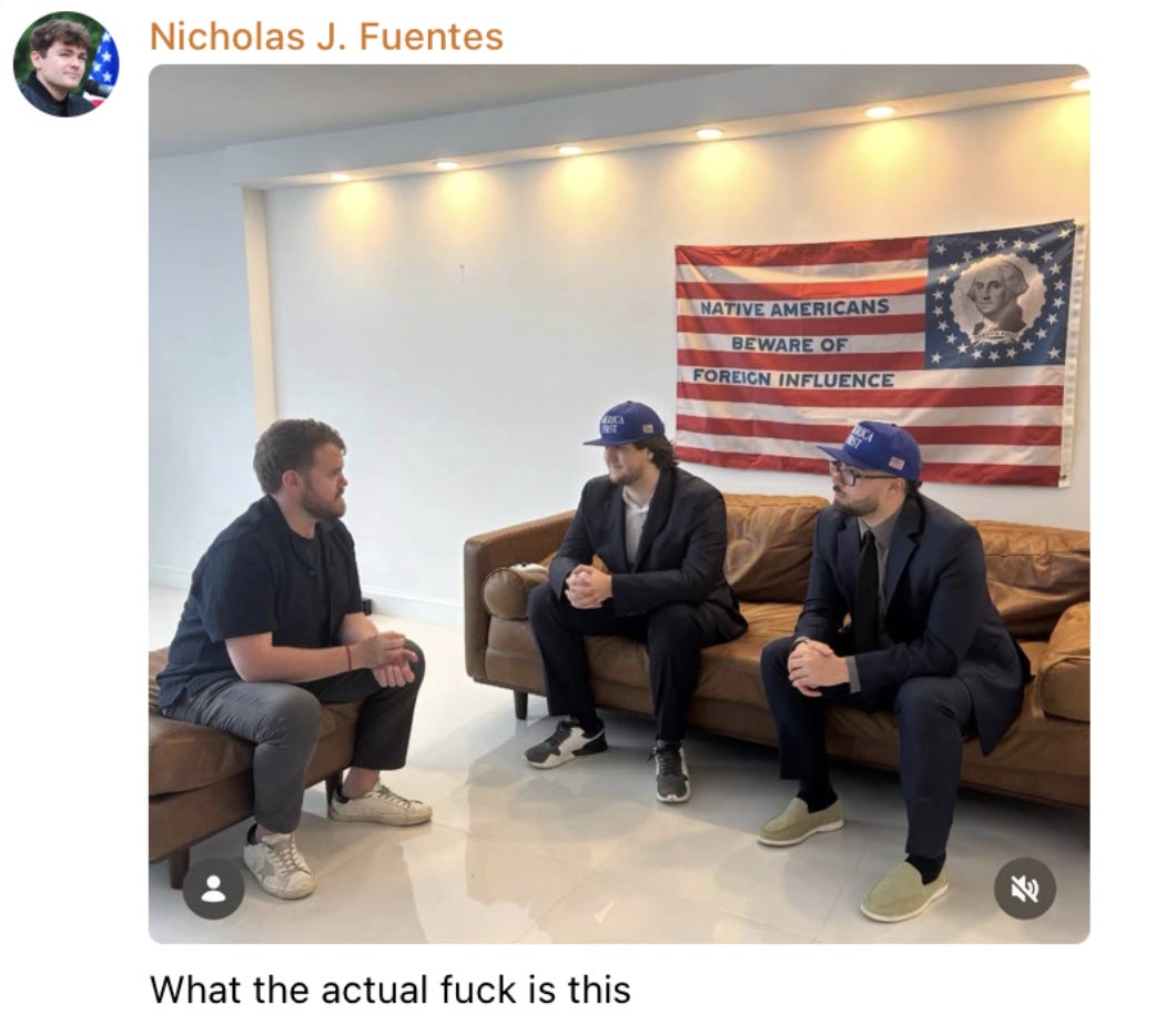 But by the weekend, the vibes had turned sour and popular opinion had changed; people were starting to feel it was Lawrence who had been mogged. As pictures he posted of the still-unreleased CNN interview began circulating online, none other than Fuentes himself entered the conversation—fuming that Lawrence and another of his followers were making his fanbase look slovenly.