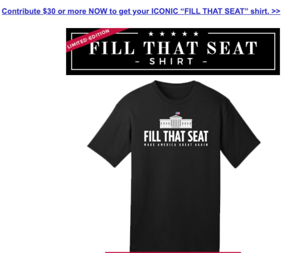 How seriously are we going to take this? Well, this is 2020, and it’s already a t-shirt and a rally chant.