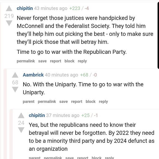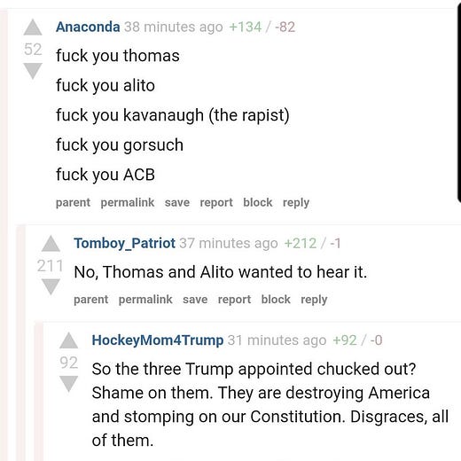 ICYMI: TrumpWorld did not take Friday night’s ruling well. Parler, in particular was a dumpster fire of grievance, disillusionment, and threats of violence.