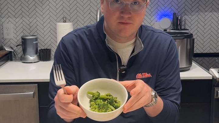 My stomach was still aching when I woke up, so I delayed eating for a few hours. When I did finally eat, the broccoli was once again my saving grace. I imagine the meal would’ve been almost inedible without it. That’s why it was so disheartening to realize I might not be enjoying any more meals with it: My broccoli bag was already empty.