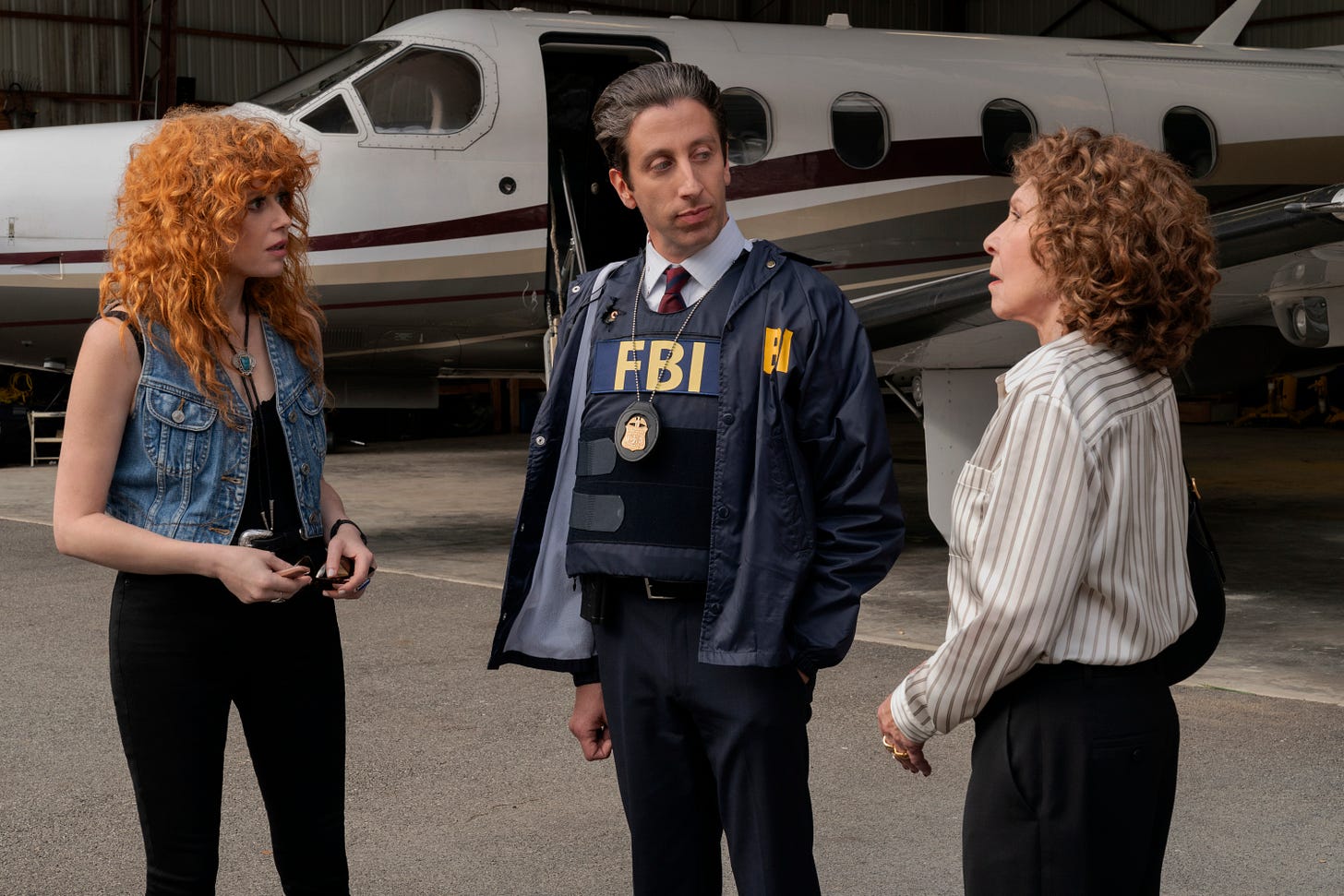 It’s clear that both Lyonne and Johnson love actors of all stripes. Whether Lyonne is acting with a 77-year-old pro like Rhea Perlman (as the head of a mob syndicate) or a preternaturally talented 12-year-old like Eva Jade Halford (as a diabolical fourth grade star pupil), she gives each equal respect and weight. And although her portrayal of Charlie is full of quirks and mannerisms, her character is always grounded in reality, humor, and pathos. Charlie is a loner, yet she craves human connection. Even mid-season when she is (briefly) no longer on the run, she’s a restless, wandering soul. Each episode, she tries on for size another place and group of people, but because of fateful circumstances, none of them fit. She begins a romance that actually seems promising until her date ends up a murder victim. Her most consistent connection is with the disembodied voice of a long-haul trucker on her CB radio named Good Buddy (Steve Buscemi), who gives her life advice and lends her his apartment in Brooklyn since he’s hardly ever there. Like most mutant powers, her bullshit detector is both a blessing and a curse. It protects her, but it also keeps her from letting things lie and not becoming enmeshed in other people’s problems. The only person who consistently cares about Charlie’s wellbeing is Agent Luca Clark (Simon Helberg), but he can’t be a true friend since he’s been charged with bringing her into FBI custody. In NYC, she attempts to put down roots and rest awhile. She even starts forging a potential deep friendship/partnership. But Charlie isn’t suited to stability and stasis. Soon enough, she’s peripatetic, running from and toward danger again. Amiability and loneliness go hand-in-hand for Charlie, and it’s one of the reasons she’s such a compelling, sympathetic person.