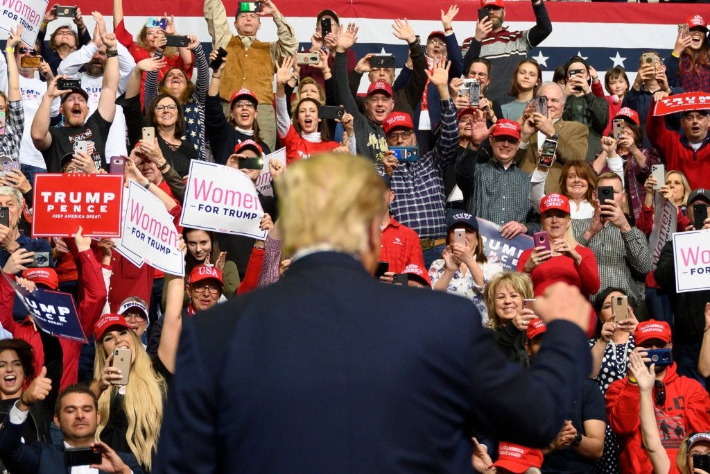 Supporters cheer as US President Donald Trump arrives to address a "Keep America Great" rally in Colorado Springs, Colorado, on February 20, 2020. (Photo by JIM WATSON / AFP) (Photo by JIM WATSON/AFP via Getty Images)