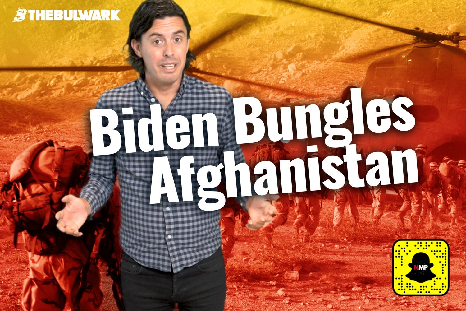 The fact that we did not at minimum manage to safely evacuate the 11,000 Americans, plus all of our Afghan allies who have risked their lives to help us over the years before the Taliban rolled in, is to our lasting shame. We're leaving many of our translators to the mercy of imperious despots straight out of the Middle Ages. At The Bulwark, we did a text interview with an Afghan fighter who trained here in America, loves our country, but now is in hiding, fearing for his life. He has seven children. What did he do to deserve this? Thousands like him have spent months filling out forms, trying to get out of Dodge and are now in paperwork limbo, stuck in the world's most hellish DMV. No wonder so many innocent Afghans were sprinting through the airport for help, hanging onto our jets. And some falling to their death. Our withdrawal also has massive implications for all of the country's women and girls. Biden laid out his mindset like this.
