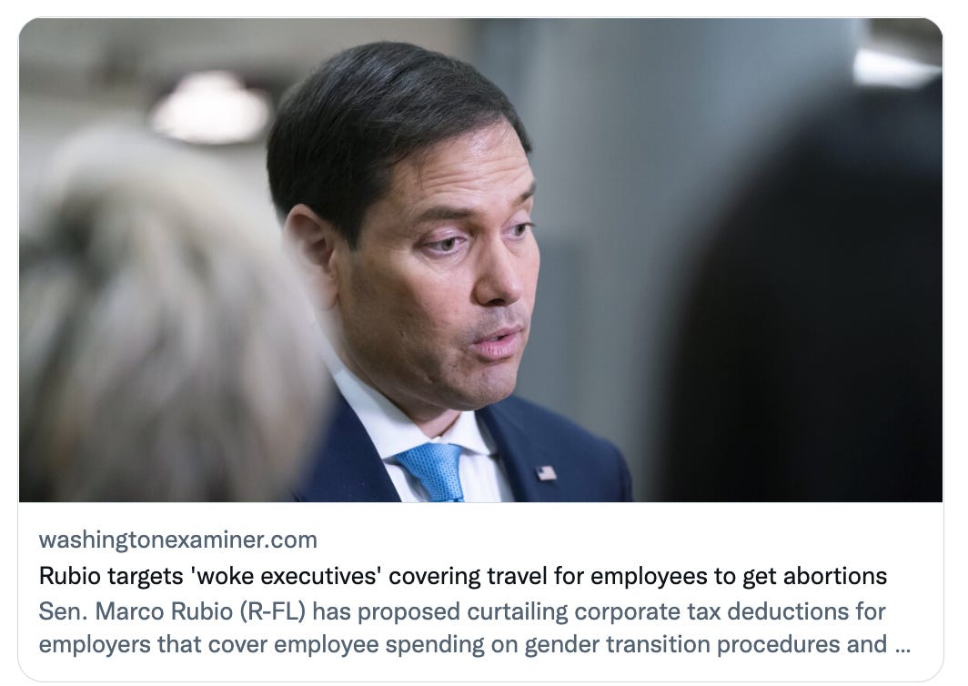 The problem with tax incentives… Is having to rely on politicians to not use them as catnip to cajole you one way or the other. But let it be said: the days of the GOP as the low tax, stay out of the way of business party are long over. Shame on Senator Rubio.