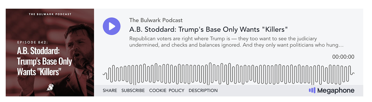 You can support The Bulwark by subscribing to Bulwark+ or just by sharing this newsletter with someone you think would value it.