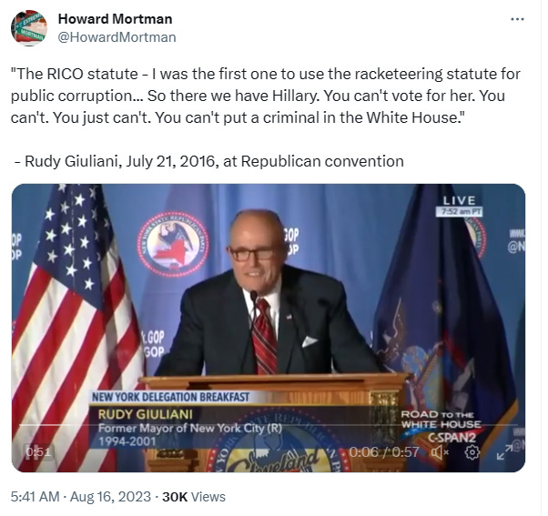 Rudy Giuliani, RICO Champion, Gets Indicted on Law He Made Famous - WSJ