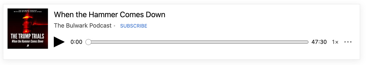 Tech support questions? Email members@thebulwark.com. Questions for me? Respond to this message.