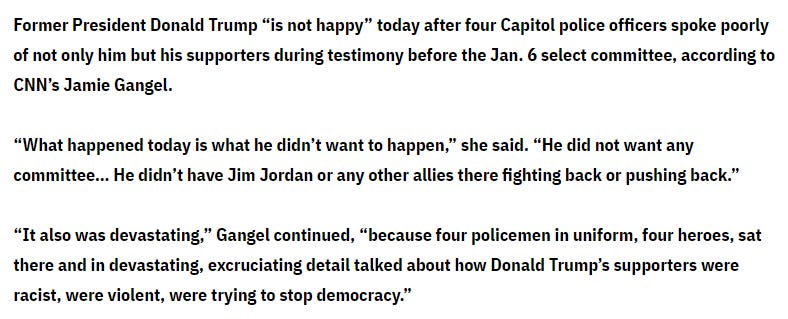 Some initial takeaways from the first day of hearings by the January 6 Committee: