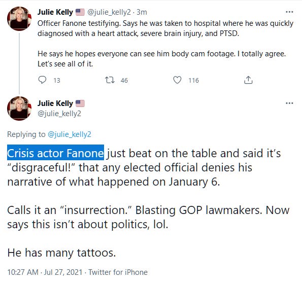 "The indifference shown to my colleagues is disgraceful!" [Officer Michael] Fanone shouted as he pounded the witness table. "Nothing, truly nothing has prepared me to address those elected members of our government who continue to deny the events of that day. And in doing so betray their oath of office."