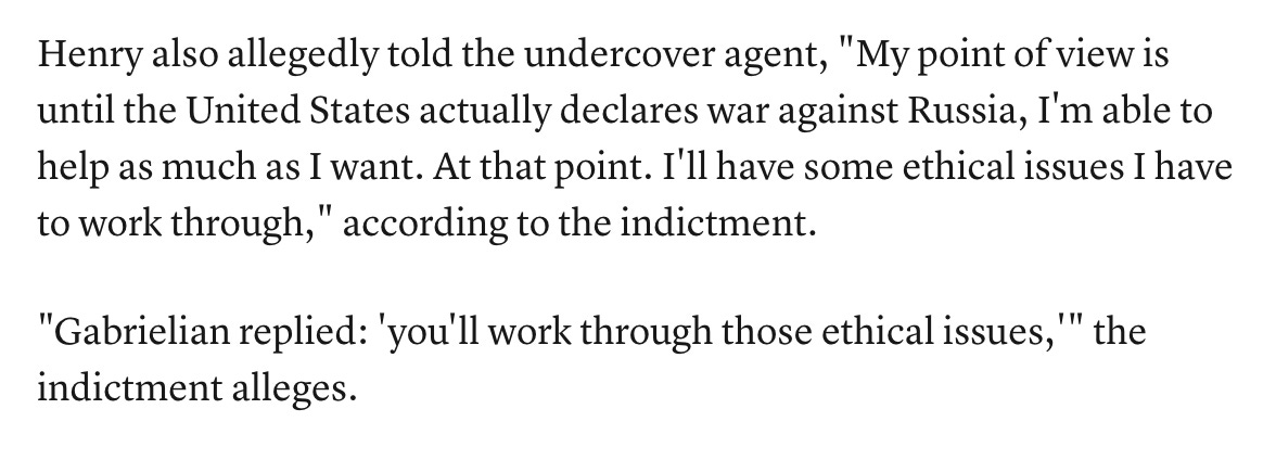 There is one specific detail from the indictment that these journalists zeroed in on. It’s about Henry’s hesitation when speaking to the person he thought worked for Russia. This is a screenshot of that exchange: