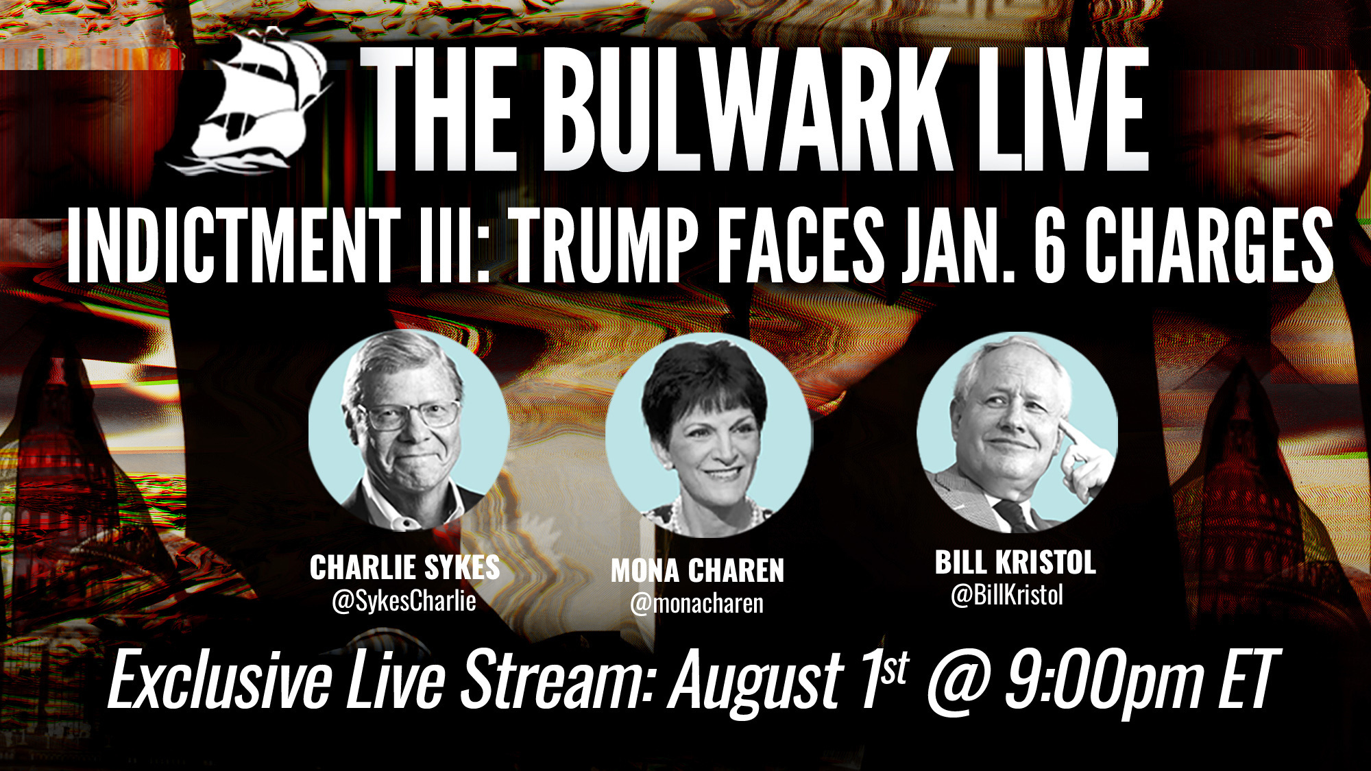 Charlie Sykes, Bill Kristol, Mona Charen, and special guest Dennis Aftergut share their first reactions to Indictment III, Jack Smith’s January 6th indictment.