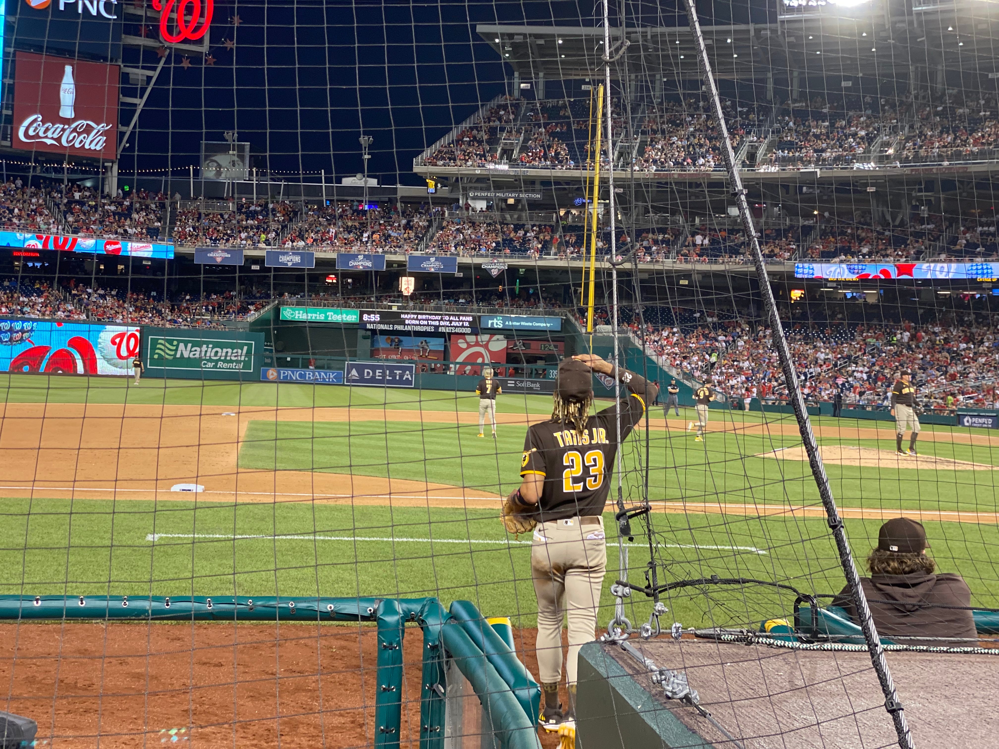 On Saturday I took my 13-year-old son, Flash, to the ballpark to see the Nationals and the visiting San Diego Padres. Here’s the view from our seats as the most exciting player in baseball took the field: