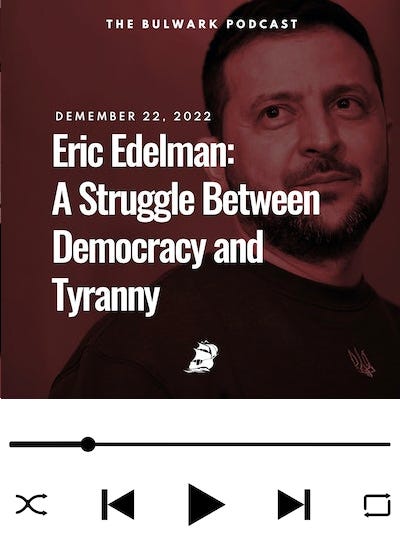 Zelensky didn’t hit a wrong note, and he embodied the Ukrainian people’s will to freedom on the floor of the US Congress. Plus, from a realpolitik perspective, the degradation of Russian military power via US aid to Ukraine is a bargain. Amb. Eric Edelman joins guest host Bill Kristol today