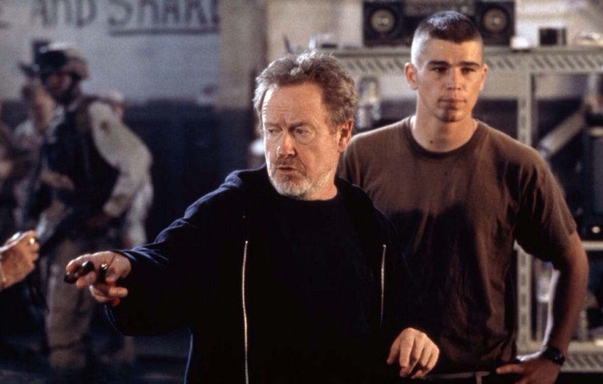 RIdley Scott on the set of ‘Black Hawk Down’
