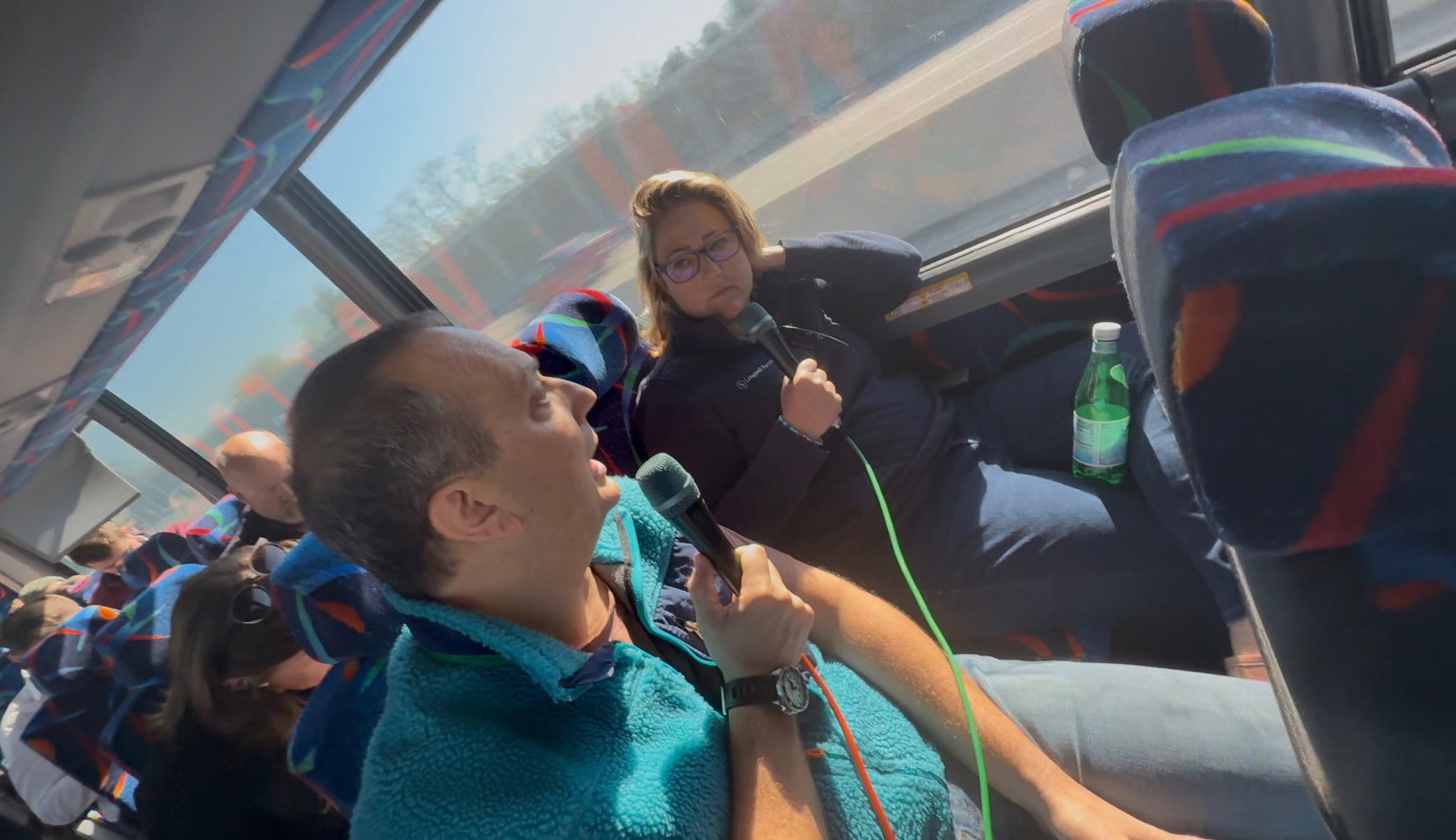 It’s a low-fi podcast from the middle of Pennsylvania as Sarah and JVL huddled together on the bus and chatted. No bumper music. No Rebecca. Just a couple of best friends on a road trip, sharing their hopes and fears with the fam.