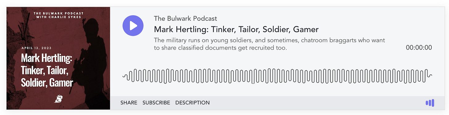 The military runs on young soldiers, and sometimes, chatroom braggarts who want to share classified documents get recruited too. Plus, the real world damage in Ukraine from the leaks, and Putin's paranoia. Lt. Gen. Mark Hertling joins Charlie Sykes today.