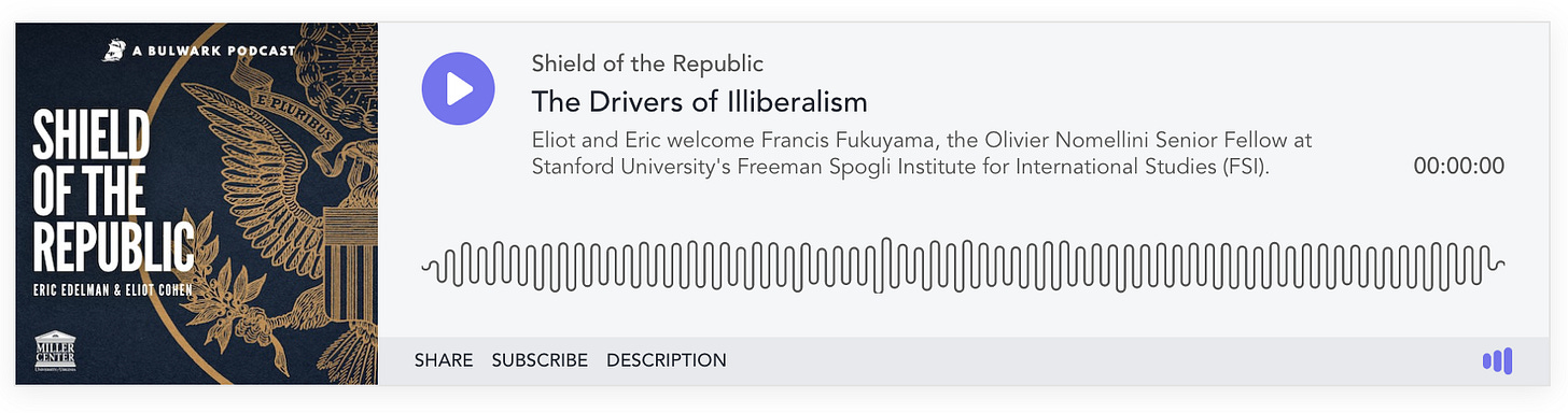 Eliot and Eric welcome Francis Fukuyama, the Olivier Nomellini Senior Fellow at Stanford University’s Freeman Spogli Institute for International Studies (FSI). O