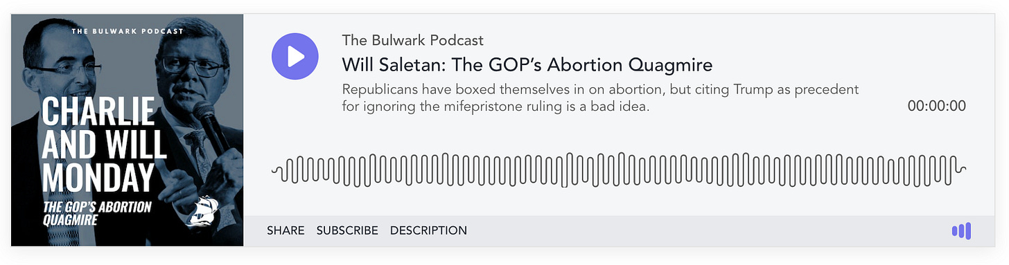 You can support The Bulwark by subscribing to Bulwark+ or just by sharing this newsletter with someone you think would value it.