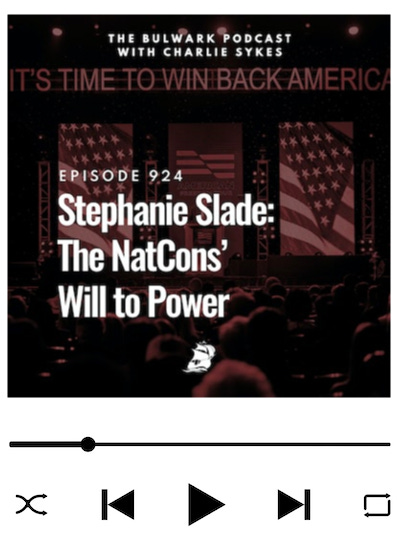 Elements on both the left and right are tracking in the same illiberal direction on economic regulation, the First Amendment, and on radical rhetoric. Plus, the NatCons’ plan to get the country to go full Trump. Stephanie Slade joins Charlie Sykes today.