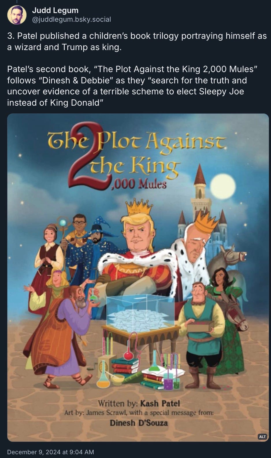Trump followed that with a fig leaf, saying that he would not direct his new FBI director to do this jailing for him. But why would he need to? He’s out there, in the open, expressing his desire for it. And in Kash Patel, he’s chosen a human attack dog who spent years auditioning for the post of FBI director by rattling off—to anybody who’d listen—the Trump enemies he’d prosecute given the chance. Patel doesn’t need the president-elect to give him the green light on national TV—but here Trump is, doing that anyway.