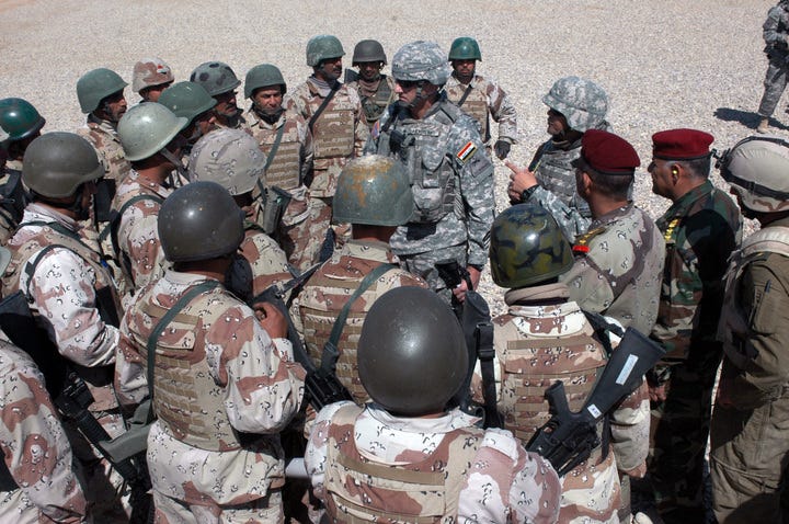Between my two tours in Iraq, first in 2003–2004 and then in 2007–2008, one of the more subtle changes I saw in the Iraqi Army and Iraqi Police that U.S. forces were helping organize and train had to do with masks. During my first tour, many of the police recruits and the young soldiers—jundi—wore scarves pulled high across their mouths and noses, sometimes a traditional shemagh or keffiyeh, sometimes whatever cloth they could find. Those face coverings weren’t about intimidation. They wore them due to fear and a lack of courage. Cowardice.