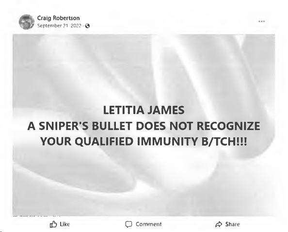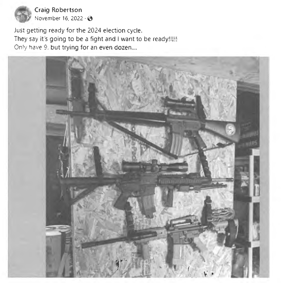 The complaint, dated August 8, 2023, contained other truly frightening social media posts from Robertson. Here are a few of them.