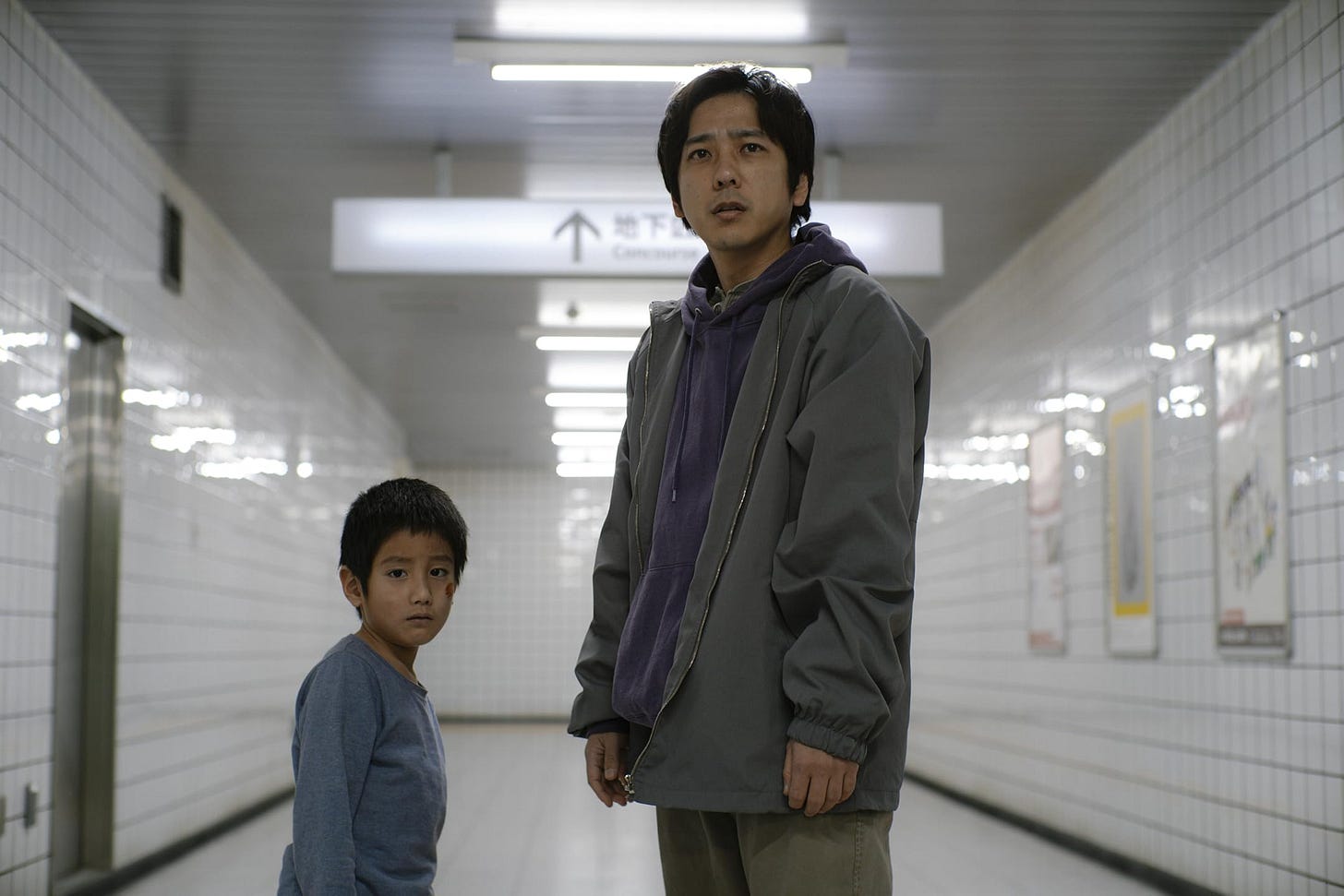 In the film, we begin on the “Lost Man” (Kazunari Ninomiya), who is taking a train to his dead-end temp job. After sitting by while a man berates a woman with a crying infant on her lap, he gets a call: His girlfriend is at the doctor, she’s pregnant, and she doesn’t know what to do. Importantly, we see all of this from the first-person POV, mimicking the view a person in a walking simulator might have. Thankfully, this is only temporary—extended first-person sequences in a film like this are recipes for motion sickness—but it sets the mood and pays just enough homage to its source material for us to know it is taking seriously what it’s riffing on.