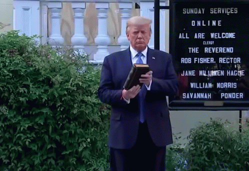 And then like any other red-blooded Christian-American, Mr. Trump found a Bible, put it in his daughter’s Birkin bag, and walked to the church in the greatest parting of the waters since Moses.