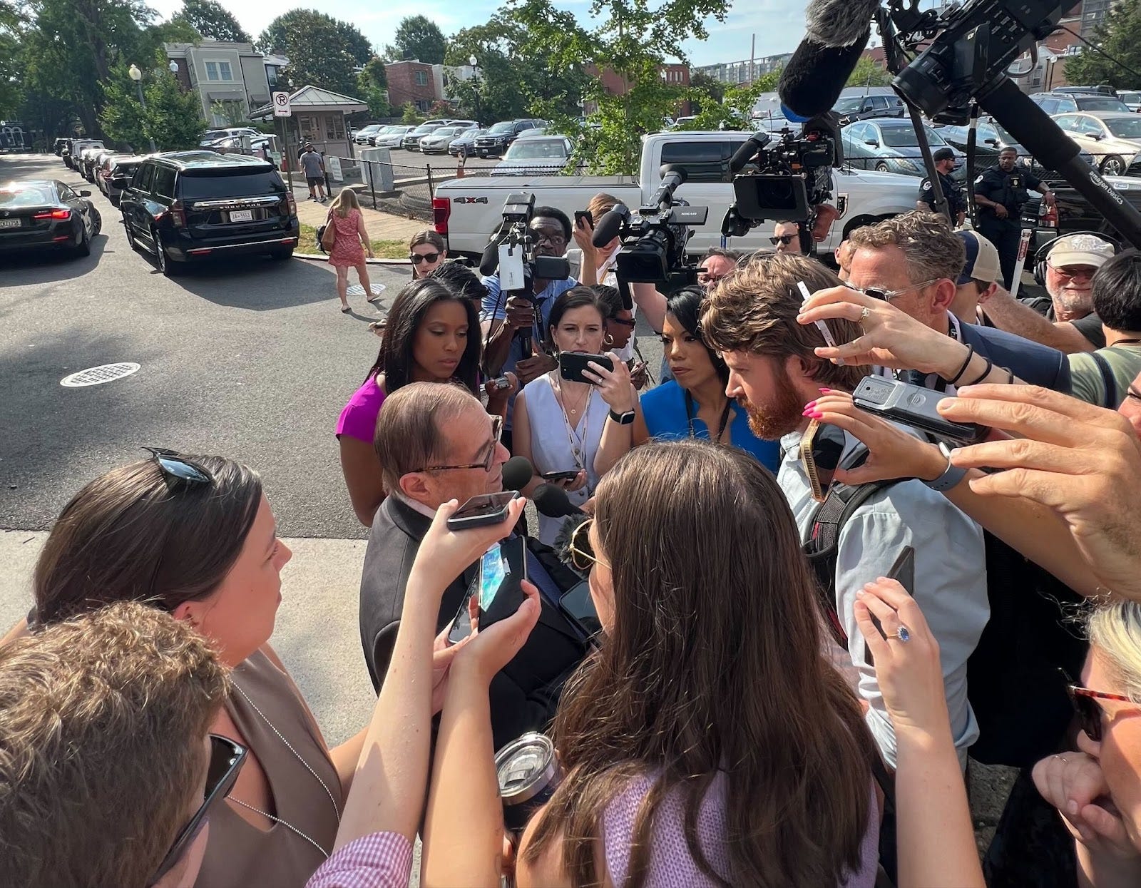 This morning outside the Democratic National Committee headquarters, just a couple blocks south of the Capitol building, House Democrats met for a discussion so sensitive, they had to relinquish their cell phones before entering the room. Outside, it was quite literally a hot mess.