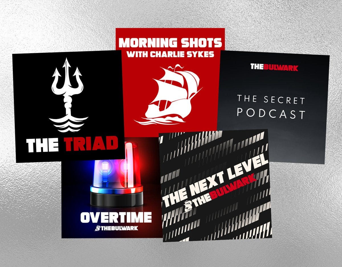 A lot of my time is spent working on our podcasts. In the two years we’ve been doing The Bulwark as you’ve come to know it, Charlie Sykes has hosted over 500 episodes, and gotten 29 million downloads. Some people couldn’t believe it two months in that we got a million downloads. If they weren’t conspiratorial attention seekers, I wouldn’t blame them.