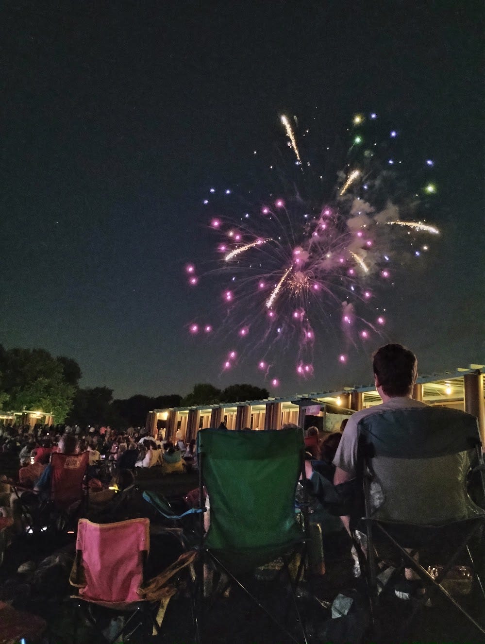 we wanted local fireworks, found a city parks' display at the same lake we go for the Christmas lights exhibit, and set ourselves up at a supermarket parking lot half a mile away. our view was excellent, the fireworks were glorious, and the vibe totally chill—I'm sure many of those sharing our space had politics very different from ours, but everyone was relaxed and happy to be there. it was everything we hoped it would be, and we came home in a glow. a great, brief respite from the now omnipresent dread always lurking.