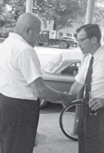 William Winter (right) campaigning for governor in 1967. (Courtesy Mississippi Department of Archives and History)