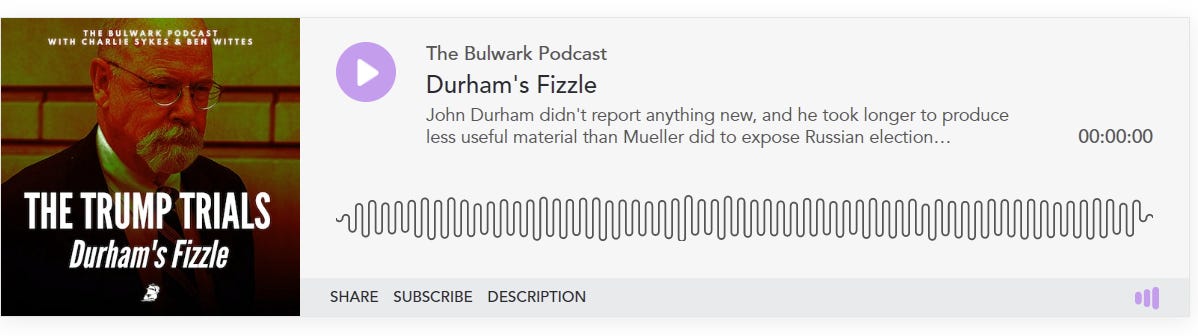 On yesterday’s episode of our special “Trump Trials” podcast, Lawfare’s Ben Wittes and I discussed the fact that what’s true in the Durham report isn’t new; and what’s new isn’t true. Also: Mayor Rudy’s latest, and the Mar-a-Lago investigation.