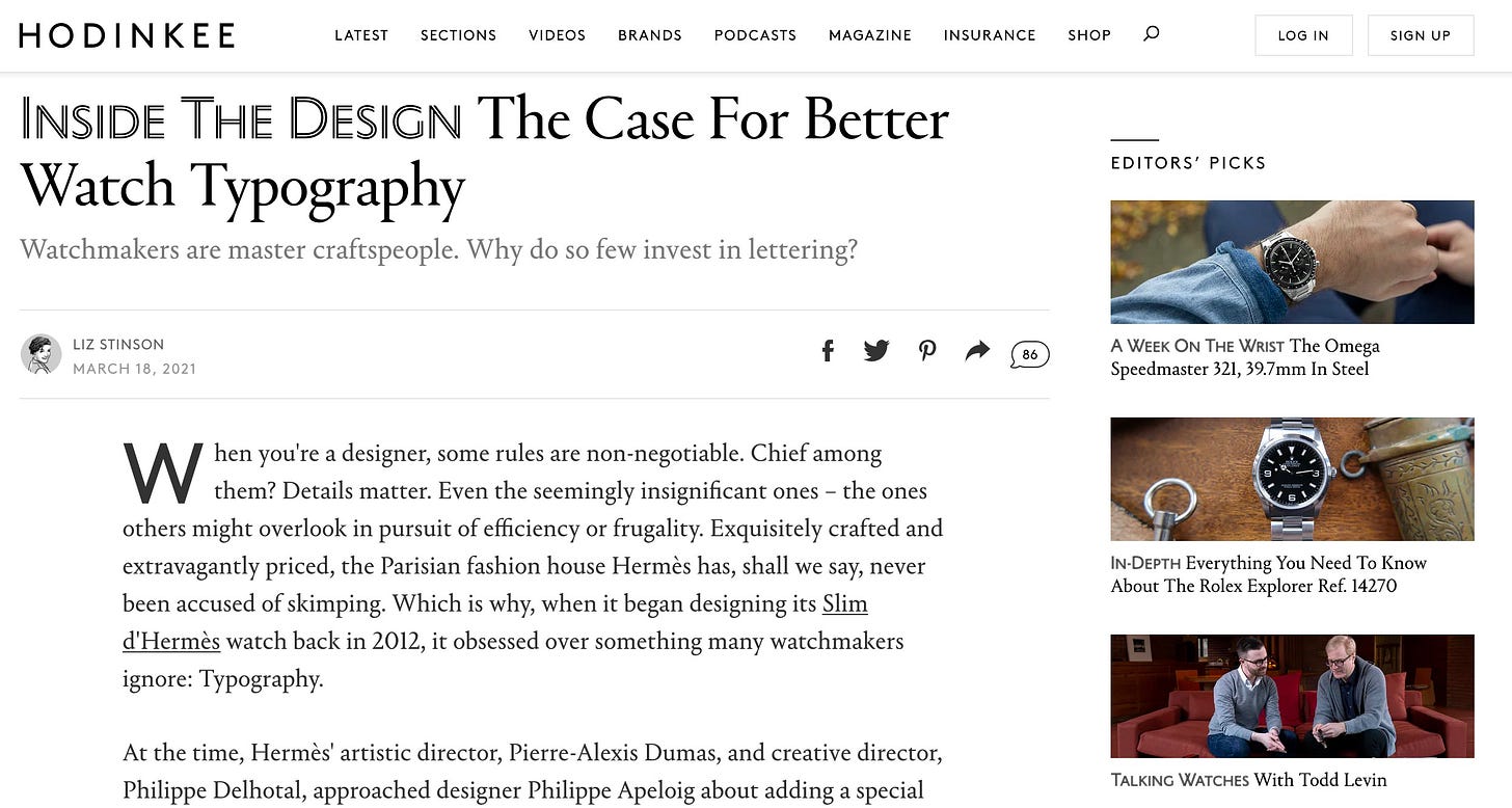 The piece is mostly about the creation of a new font at Hermès. Here’s Liz Stinson telling the story: