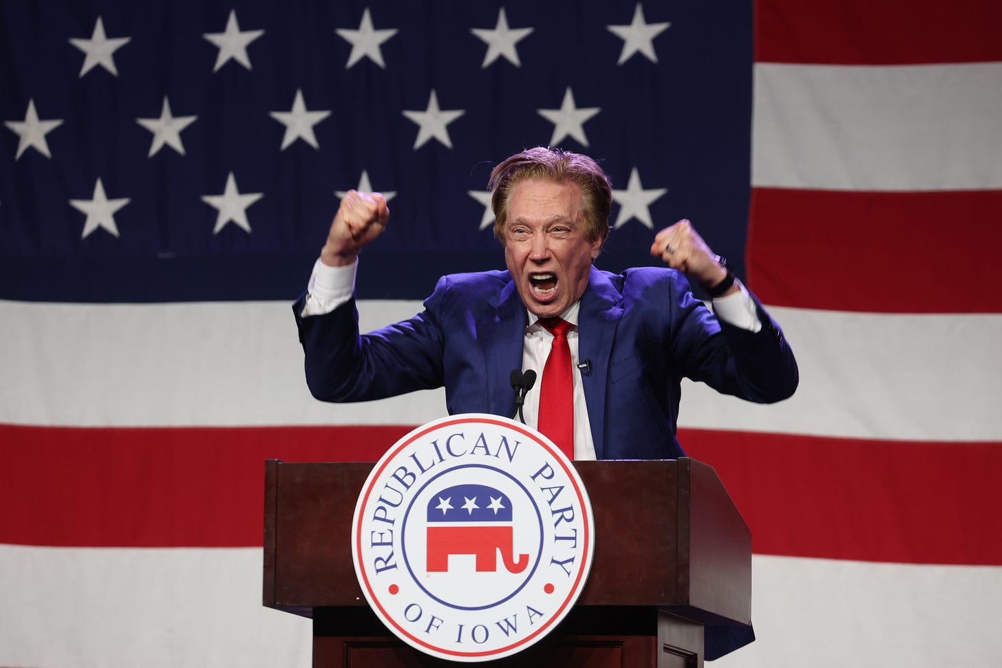 At the Iowa State Fair last week, Jackson went to get a feel for the crowd, bringing along with him an aide and two individuals cosplaying as a security detail. They both wore shades and those clear, coiled earpieces everyone associates with the Secret Service. They never stopped scanning nearby fairgoers either, and even gave the impression they were creating some kind of perimeter around the event—except of course in the areas where Iowa state troopers were doing the same thing for real on behalf of the governor. Later in the day, while I was watching former Texas Congressman Will Hurd’s Des Moines Register soapbox speech, I spotted Jackson talking to the man running the soundboard. Jackson was requesting to give a speech of his own. At one point, one of his personal guards attempted to pass an info-card about the Jackson campaign to the person actually in charge of the program. Jackson never got on stage.