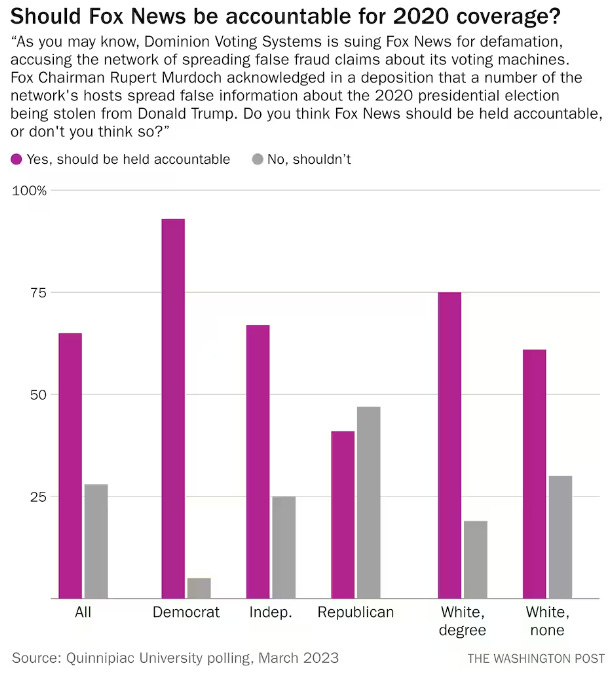 A new poll finds that two-thirds of Americans — including 2 in 5 Republicans — think that Fox News should be held accountable for its election lies.