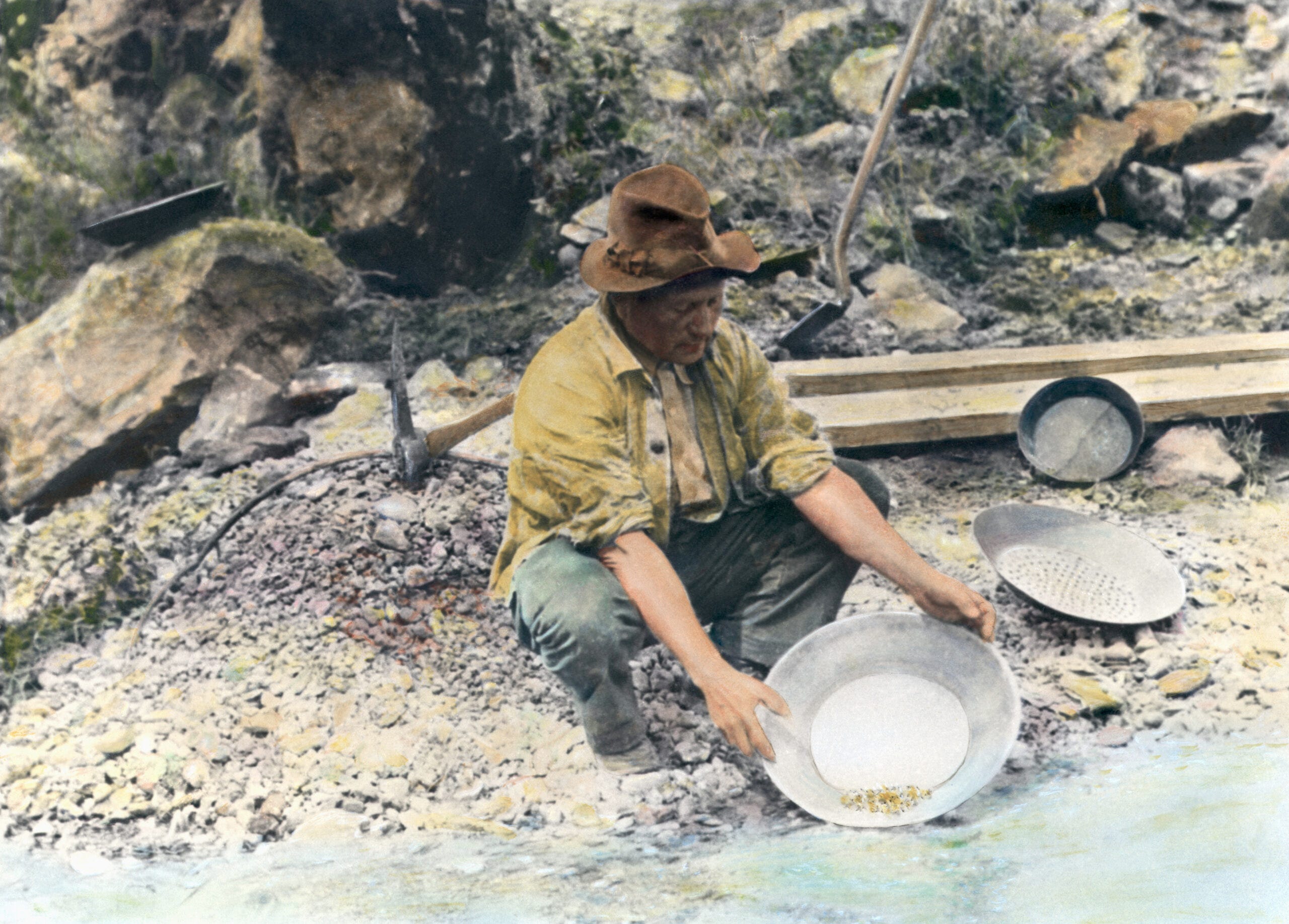 On January 24, 1848, James Wilson Marshall, a carpenter from New Jersey who had taken up residence near Sutter’s Fort in northeast California, was attempting to establish a timber mill to feed burgeoning construction in nearby Sacramento and, farther afield, the settlement at San Francisco. While surveying the building’s progress, Marshall happened to notice some “sparkling pebbles,” which he initially dismissed as quartz. He noticed more of the pebbles later that day and picked a few of them out of the riverbed. Marshall discovered the rocks “could be beaten into a different shape, but not broken,” meaning they were definitely not quartz—they were likely gold. He brought samples to his business partner, and together they conducted a few more tests. Marshall was right about what he’d found. News of his discovery spread. The California Gold Rush was on.