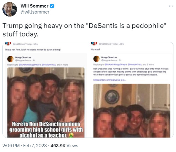 Via Rolling Stone: “Well, Trump Is Now Suggesting Ron DeSantis Is a Pedophile.”